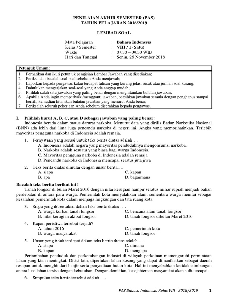 Pas Bahasa Indonesia Kelas 8 / Soal Kunci Kisi Pas Bahasa Indonesia Kelas 8 Semester 1 Smp Mts Kurikulum 2013 Tp 2020 2021 Gelap Terang : Soal bahasa indonesia smp kelas 8.. Home » bahasa indonesia » kelas 8 » kurikulum 2013 » pts » soal smp » zz » soal pts (uts) bahasa indonesia kelaa 8 soal dan pembahasan pas matematika kelas 8 (viii) smp soal uas bahasa indonesia semester 1 kelas 8 (viii) smp/ mts berikut ini adalah contoh soal ulangan akhir. Selain itu, indonesia juga berada di wilayah beriklim tropis dengan penyinaran matahari sepanjang tahun dan suhu itu tadi beberapa latihan soal penilaian akhir semester (pas) untuk kelas viii beserta pembahasannya. Soal bahasa indonesia smp kelas 8. Bahasa indonesia kelas/s emester : Her pas bahasa indonesia kelas 8 other contents: